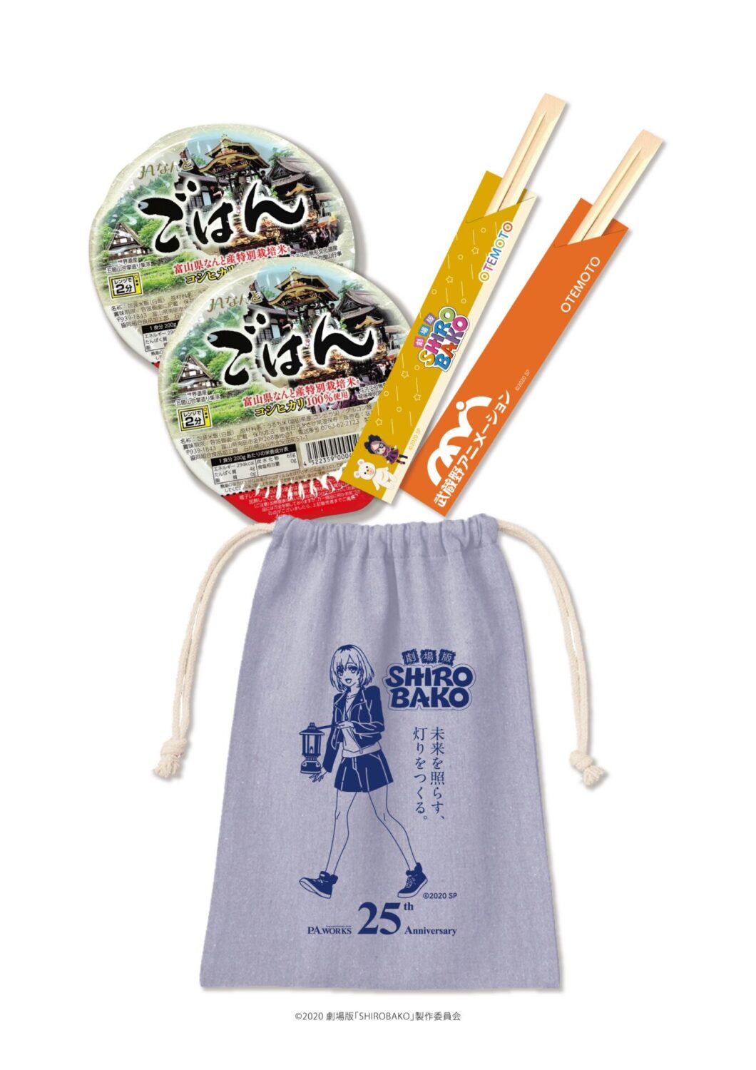 『劇場版SHIROBAKO』オリジナル巾着入りパックごはんセット 販売開始!